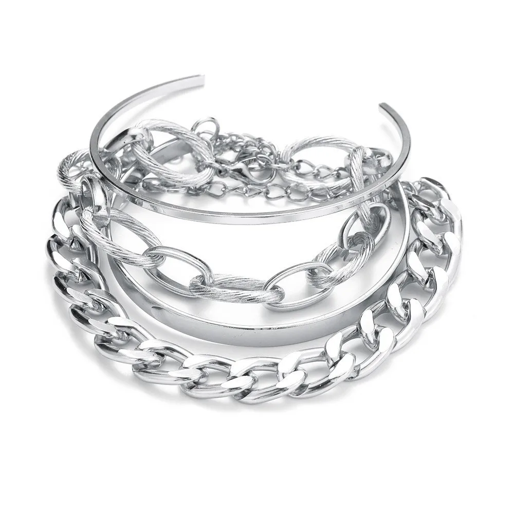 Bohemian Metal Chain Bracelet Set For Women Geometric Gold Color Thick Link Chain Open Bangle Female Fashion Jewelry
